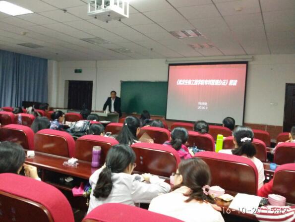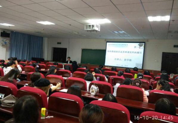 我校科技处彭云老师讲座专题《武汉生物工程学院专利管理办法》,从“怎么申请专利”、“在专利申请方面学校给广大师生提供了哪些服务和帮助”以及“学校对专利申请的鼓励措施和管理办法有哪些”等方面进行了讲解。