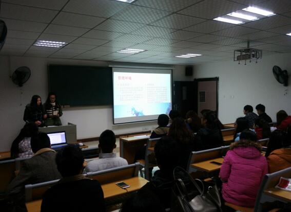 对于这样的考试方式同学们都非常认可。考试现场,同学们分组用自导自演自拍的PPT视频分别对“领导职能”、“领导的艺术”、“领导的含义”、“古典管理理论”等课程主题设计案例在讲台上进行演讲,学生评委则通过讲解人的讲课方式、风格和视频、PPT的逻辑性等细则进行打分。工程造价本科二班张婷同学说,为了制作好视屏和PPT,我们连续几天泡在图书馆查找有关资料,感觉学到了好多,并且在考试时让同学们互相打分,立马感觉考试成绩公平了许多。刚讲完微课的马贝同学兴奋不已地告诉记者,自从老师布置考试题目后,她便与同伴准备微课策划方案,组织拍摄并剪辑视频,今天第一次上台讲课,就能得到同学们的喜欢,对她鼓励很大,也更感觉到老师平时要讲一堂精彩的课是多么不易。