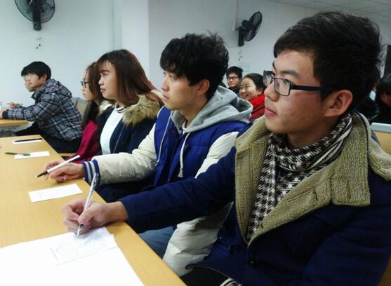 本网讯(大学生记者团 王凯 林兰)与以往严肃安静、埋头苦写的考试不同,建筑工程学院马玉芳老师的《管理学》期末考试现场充满欢声笑语,时不时还夹杂掌声,原来马老师正以“PPT视频讲述《管理学》微课”作期末考试题,让同学们上台演讲,并由学生担任评委现场打分。