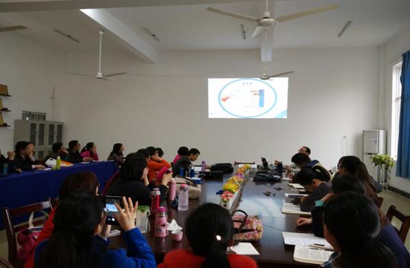 课堂上,黄老师介绍了近两年来在QQ群平台探索开展教学工作的经验,对互联网QQ群中的各项功能,如群公告、群论坛、群相册、群文件、群活动、群视频等如何应用到教学工作中进行了全面讲解,并详细介绍了如何通过互联网使学生在线上线下学习,这样不仅解决了课堂学习中存在的课时不够的问题,也避免了所有学生一个教育模式的弊病。黄老师还将他在互联网教学中所取得的一些成绩及存在的一些问题与老师们一一分享。令化环系教师耳目一新,受益匪浅。