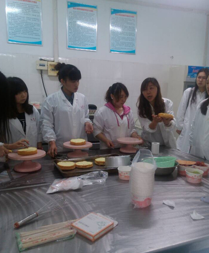 据了解,现场指导操作的这位老师名叫王钗,她真正的身份不是学校老师,而是食品工程系特意从武汉仟吉食品有限公司请来的糕点技师。另外两位才是食品工程系的卢金珍与陈列芹老师,她们正与同学们一起跟班学习王钗老师的实践操作。