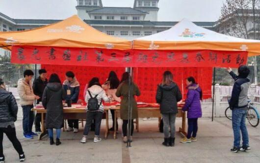 本网讯(大学生记者团实习记者 黄博)元旦前夕,晨光书法社成员在图书馆门口挥毫洒墨,无偿为师生送去节日祝福。据了解,该活动已经连续举办多年,深受师生欢迎。