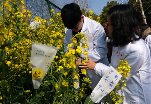 该课程任课教师梅辉介绍,杂交是常用的一种育种手段,杂交植株比亲本更健壮,结出的果实更加饱满,使用杂交技术培育的油菜,油菜籽的产量会更高。将实验课引入油菜花田主要是为了让同学们能够切身实践,在掌握自花授粉和异花授粉实用技能的基础上,全程了解和掌握自交与杂交植株的优缺点,将理论与实践相结合,深入理解,强化记忆。