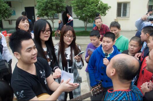 志愿者和孩子们一起唱歌