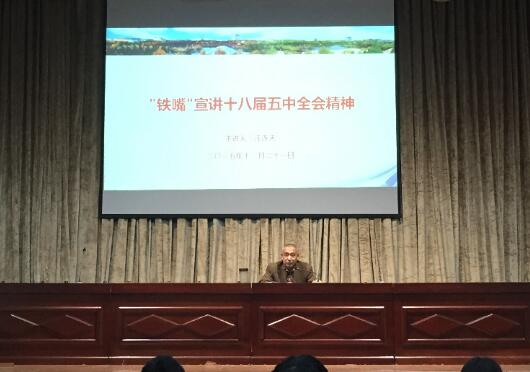 本网讯(大学生记者团实习记者 秦雪晗 李振宁)12月21日晚,知名的全国“裸讲大师”、曾被《中国青年报》誉为“铁嘴汪连天”的中共湖北省委省直机关工作委员会党校校长、企业咨询专家汪连天教授在我校钱学森报告厅,为师生宣讲十八届五中全会精神。