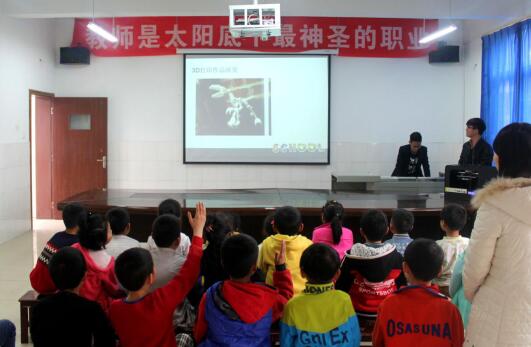 在多媒体教室,余驰和曾雄骏播放了精心制作的PPT,通俗的向小朋友们讲解了3D打印技术的来龙去脉,还向孩子们展示了3D打印技术的工作原理,将打印出来的3D成品送给了每一位孩子们。