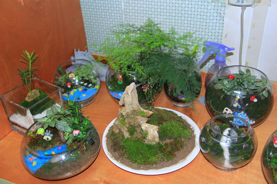 目前,他将做的 “苔藓微景观”一部分送给了同学,另一些准备拿出去卖。据他介绍,所卖的微景观价格只有淘宝的一半,这样做不是为了赚钱,只是为了收取一些成本来使这些创意坚持下去。室友张琦说:“现在他不仅是自己创业,还带着我们和他一起来创业”。同学杨斌也抢着说道:“以后我一定要自己开店来经营这些苔藓微景观”。