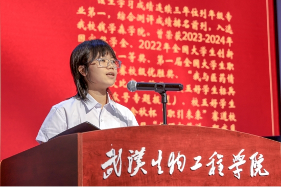 医药学院2022级的吴筱婷同学作为预科生代表,以“星辰指引创新路,薪火照亮远航途”为题向钱学森学院毕业生们致以诚挚祝福,并分享了在钱学森学院的求学体悟。