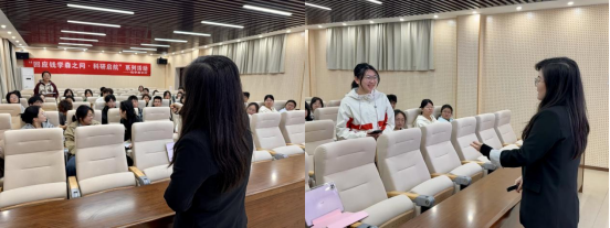 讲座伊始,朱老师结合自身科研经历分享感悟,她认为成就感是推动科研人不断前行的关键动力,如同正向多巴胺,能激励人不断攀登更高台阶。她鼓励同学们找到契合时代发展的研究方向,保持热爱,劳逸结合,在探索中实现成长。