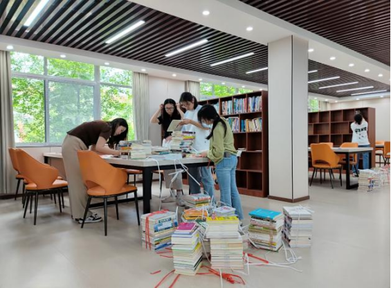 由于工作量较大,且涉及专业较多,本次活动由2022级、2023级各班选1名学生代表共同参与选书,再由多位志愿同学完成图书搬运和上架工作。