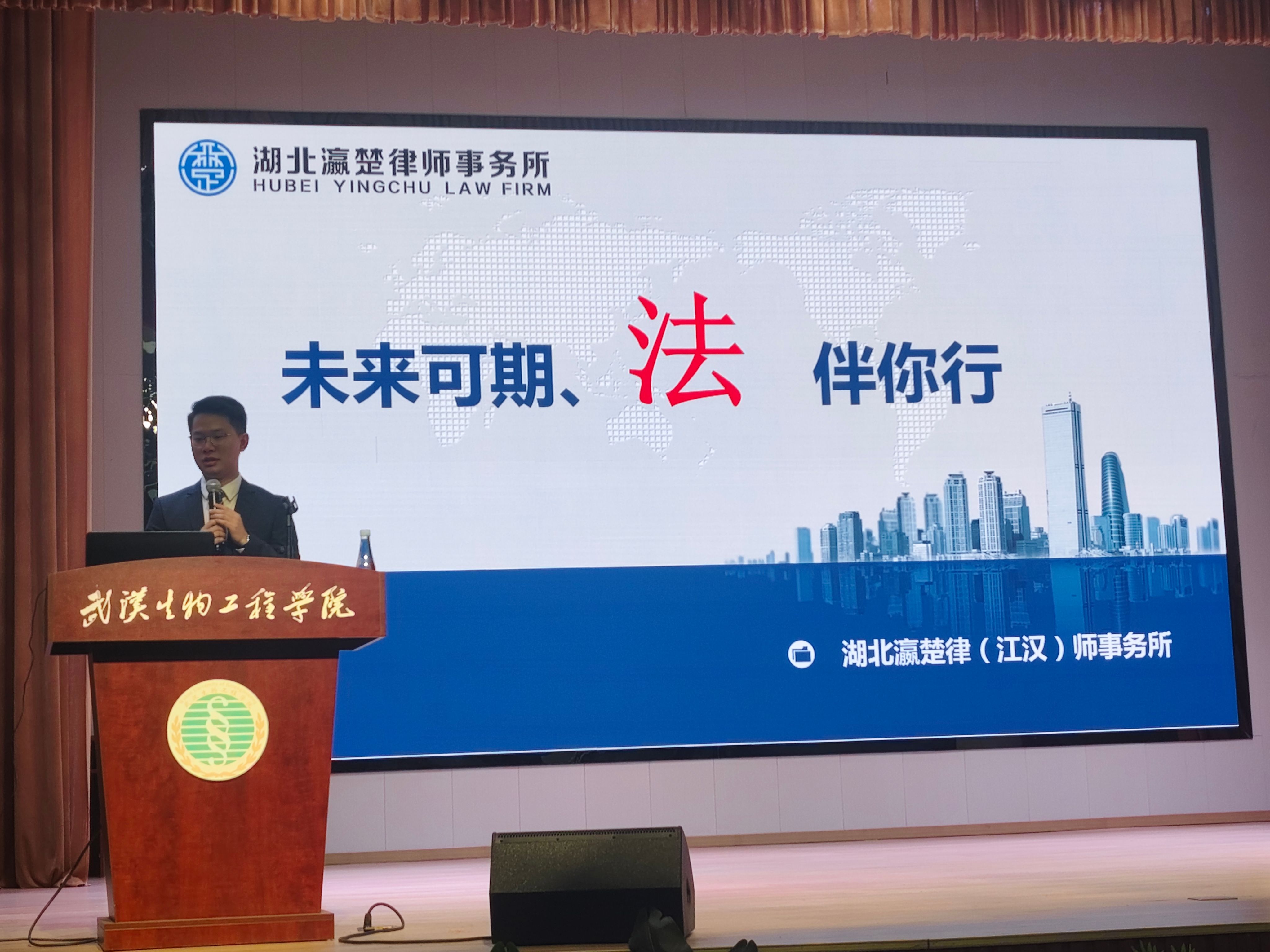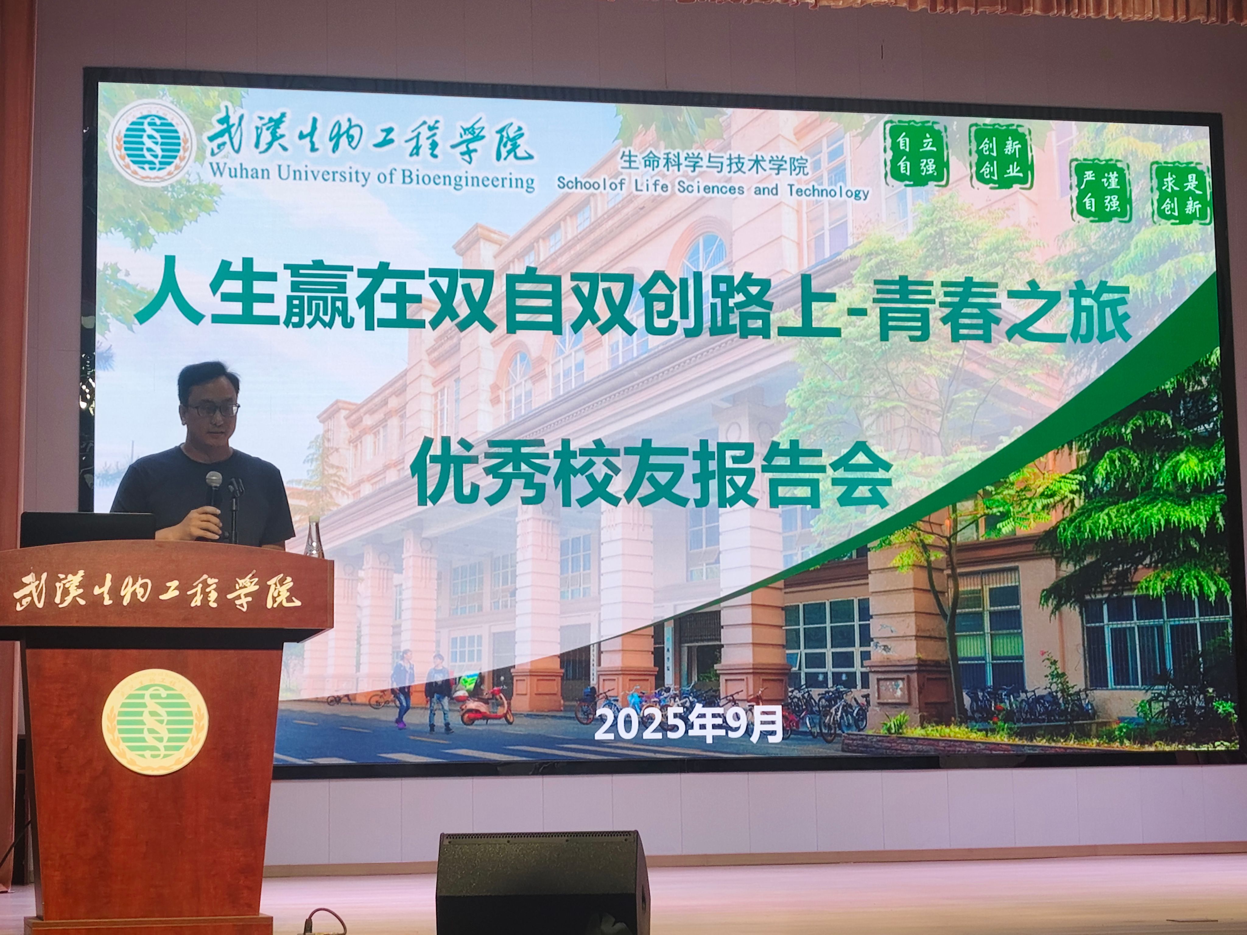 本网讯 2025年9月26日,生命科学与技术学院在校小礼堂举办“人生赢在双自双创路上-青春之旅”优秀校友分享会,邀请学院2011届优秀校友、湖北瀛楚(江汉)律师事务所管委会主任,党支部书记,湖北瀛楚律师事务所管理合伙人陈凯瑞为师生讲授法律知识。学院副院长、校友会会长徐飞教授主持分享会,2025级新生、教师代表、各年级班干部代表到场聆听。