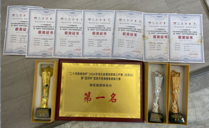 图为学生2024年参加省级健身健美公开赛奖杯及获奖证书
