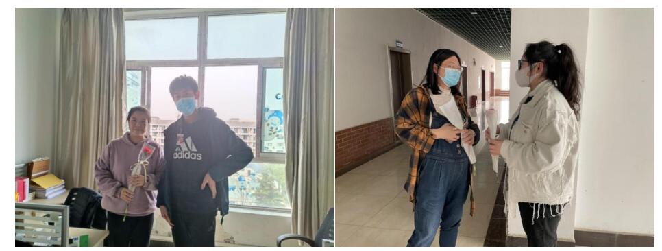 为了增强和扩大妇女组织的凝聚力和影响力,外国语学院青年志愿者协会结合“三八”妇女节契机,将雷锋志愿精神带到基层教职工群体中,为每位女性教职工送上暖心的花束与节日祝福。此次活动不仅拉进了学生与教师之间的距离,还体现了对基层女性群体的尊重和关怀,在鼓励女性教职工努力提升科研水平、增强教学实力的同时,也引导女大学生树立自信自强、积极奉献的正确意识。