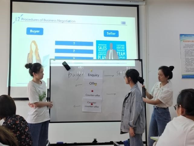 (通讯员 汪嘉恒)4月17日第七节课,外国语学院商务英语第三教研室于602教室开展了一次公开课活动。朱颜老师生动地讲解了《商务英语写作2》课程。学院院长方亚中、院长助理周晓燕莅临现场指导教学工作,部分无课教师参与了听课。