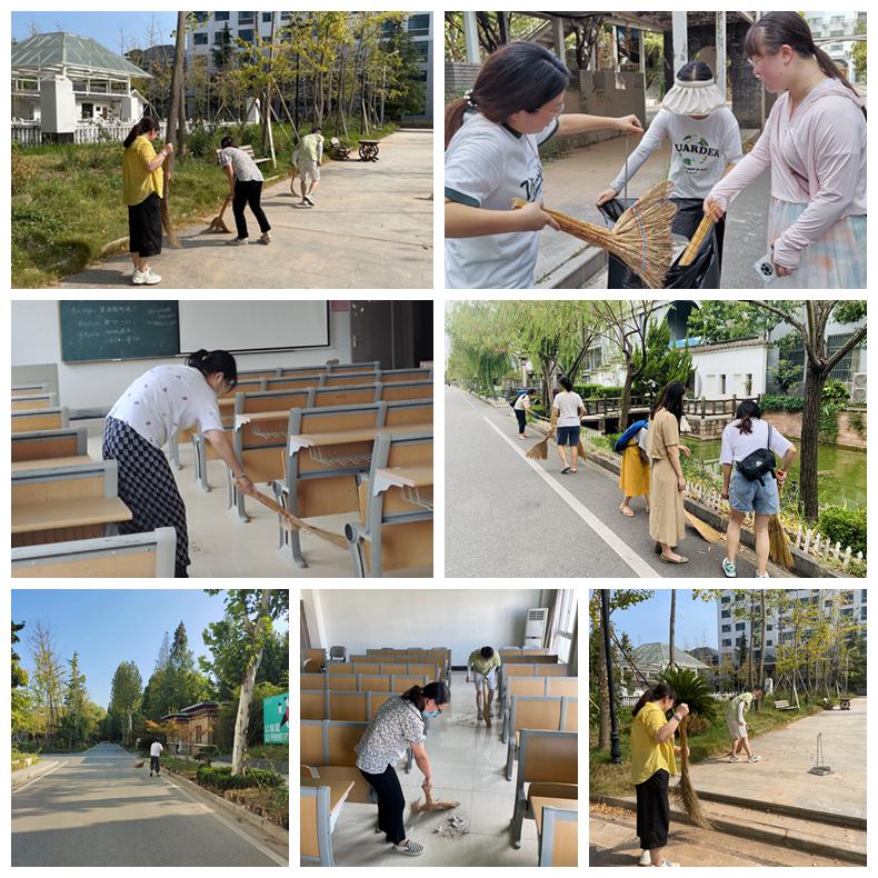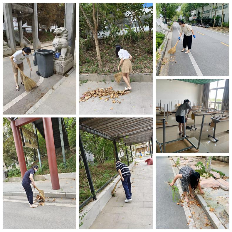 (通讯员:高亮)8月24日,新学期教职工返岗上班第一天,为响应学校党委关于深入开展爱国卫生运动的号召,美化校园环境,营造干净舒适的生活学习和工作氛围,夯实常态化疫情防控的卫生基础,为学生到校创建崭新的校园面貌,外国语学院组织全院教师开展了新学期第一次劳动。
