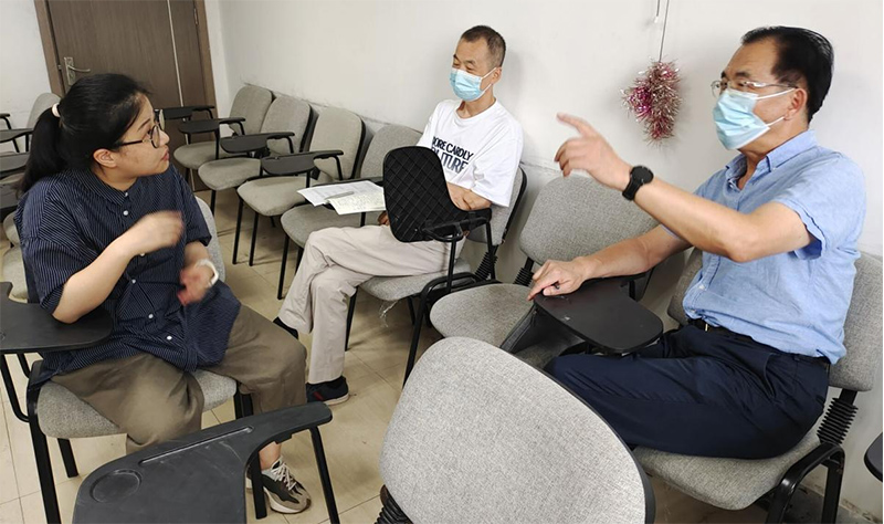 课后,蔡红生主任、方亚中教授与授课教师陶媛老师进行了交流,一致认为陶媛老师讲解细致,遵循语言发展规律,并且能在课堂教学中注意讲练结合,融会贯通。整个课堂师生精神饱满,学生听课认真,师生互动良好,学生配合度高,学习氛围浓厚。