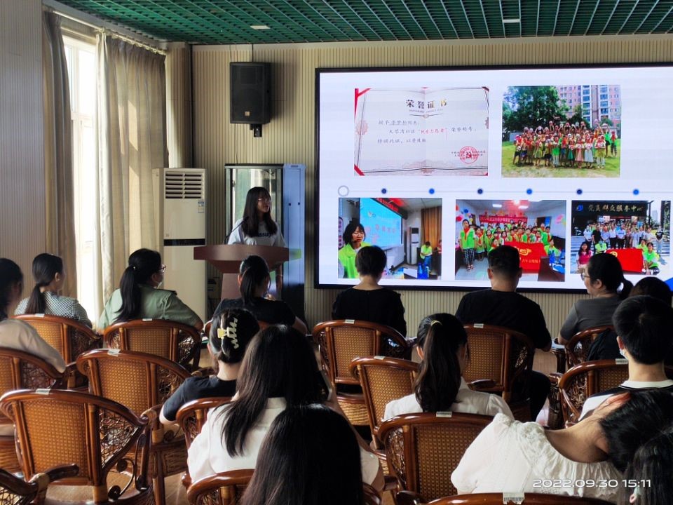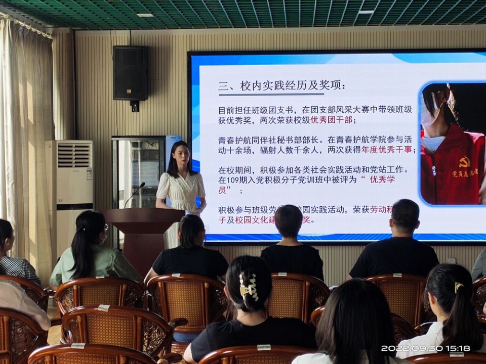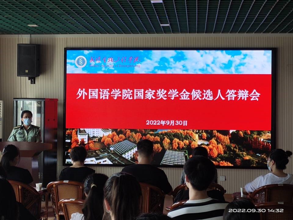 为努力拓展新形势下大学生思想政治教育的有效途径,贯彻落实武生院力培“五好”青年的育人体系,让奋斗精神凝聚青年力量,以实际行动迎接党的二十大顺利召开,2022年9月30日下午14:30,外国语学院于十号楼606报告厅举行2022年度国家奖学金候选人答辩。本次答辩紧密围绕党的十九大精神的重要要求,落实“学懂、弄通、做实”。结合青年思想实际,邀请各学生分享他们精彩的青春故事,充分展示我院学子良好的精神风貌,发挥优秀学生骨干和先进集体的示范引领作用。树立榜样,表彰先进,进一步推动广大学生爱国励志、求真力行、奋勇争先。出席此次答辩的评委有外国语学院党政负责人周芳,党总支副书记樊津,办公室主任吴翔,院长助理周晓燕,辅导员钱歆、张李亚、涂瑶。