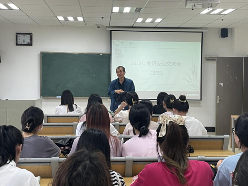 (通讯员:樊津)为做好考研学生服务,早谋划、早部署、早落实学院考研工作,外国语学院于2022年4月27日在10号教学楼309教室举行2023年考研动员及2022年考研经验交流分享会,会议由2019级学生支部书记樊津主持,院长方亚中教授、党总支副书记陈静、学业导师王瑾教授,2019、2020级意向考研学生参加会议。