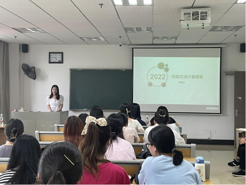 会上,跨专业考研学生代表刘李婵将确定“考研初衷”类比为“立志”。她提到王阳明先生曾说:“志不立,天下无可成之事。持志如心痛。一心在痛上,岂有工夫说闲话、管闲事。”她谈到“立志”对考研心态所起的重要作用,以及考研选择大于努力的真实感悟。陈可祎同学用她诙谐、幽默而又生动的语言为大家推荐了很多值得使用的参考书籍与资料,在分享过程中赢得阵阵掌声。潘思婷同学则用目标、决心、勤奋、细心8个字总结凝练了考研过程中需要具备的重要素养。