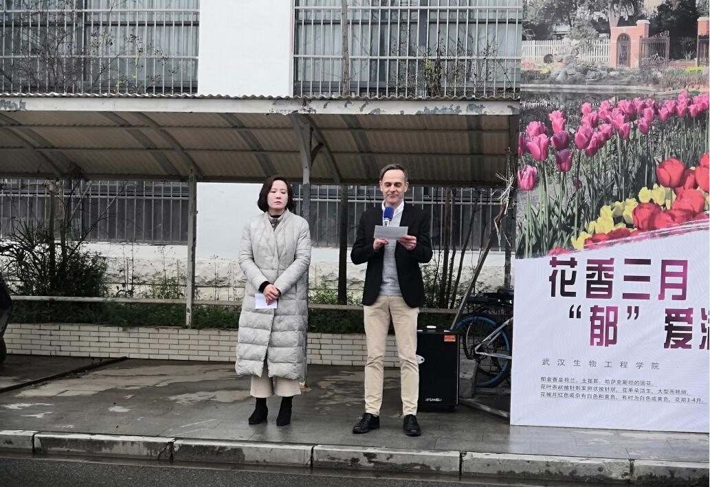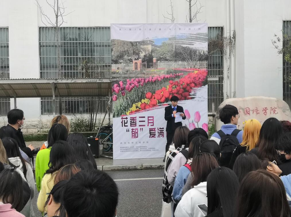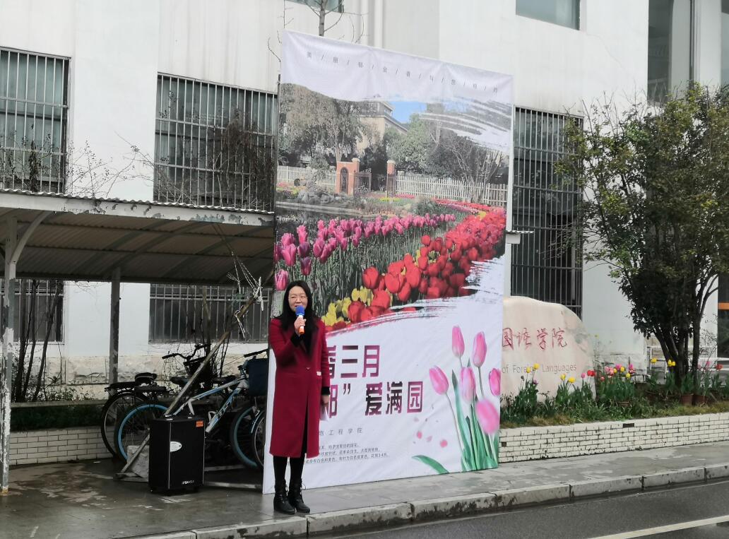 (通讯员:高亮)3月18日上午,2021年郁金香展启动仪式在金色广场成功举办。外国语学院领导班子、外事处副处长祝懿婷、外籍教师Jerry以及师生代表200余人参加了启动仪式。学院院长廖美珍教授、外教Jerry分别在仪式上致辞。本次活动由党总支副书记陈静主持。