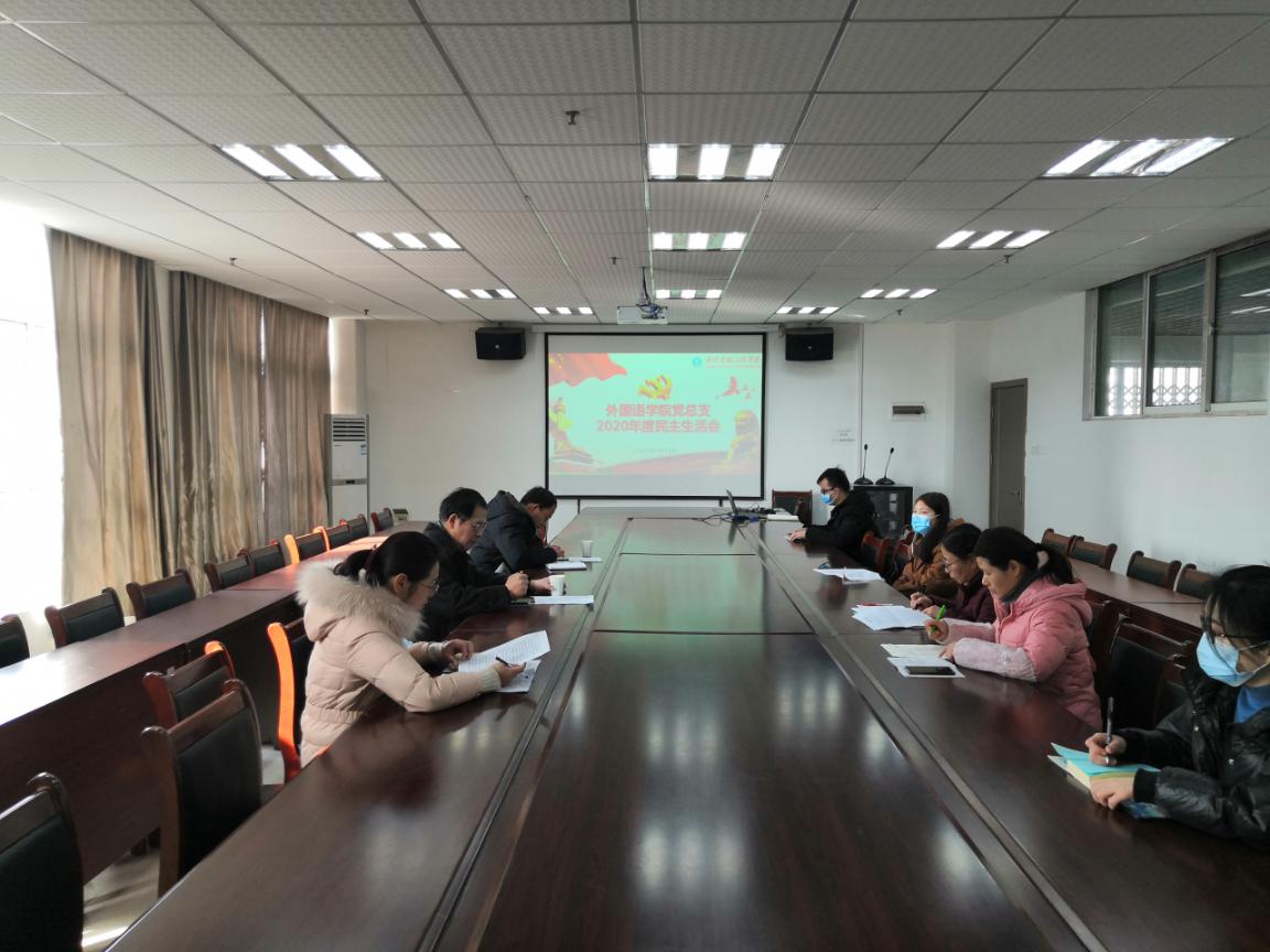 (通讯员:高亮)1月15日上午,外国语学院党总支在10号楼412会议室召开2020年度民主生活会,学院全体领导班子及党总支委员参加会议,校理事会秘书长、校委会副主任蔡红生同志及校党政办常务副主任周红祥同志应邀出席了会议。会议由学院党总支副书记陈静同志主持,部分优秀支部书记代表列席会议。