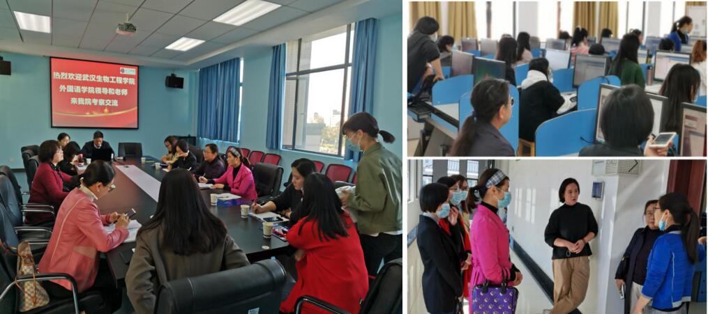 武汉学院外国语学院院长曹曼教授亲自迎接我校考察组并表示热烈的欢迎。在曹院长的带领和安排下,考察小组上午参观了该校资料室、图书馆及外语专业实训室,并深入该校《商务英语函电》课程进行实地听课观摩,了解商务英语专业实训课程的教学情况;下午曹院长组织学院曹辉书记,夏胜武副院长、商务英语系主任、英语系主任、公共外语系主任、骨干教师等参加交流座谈会,双方就专业人才培养模式、专业课程设置、实习实训、第二课堂活动、实验室建设等方面进行了深入交流和探讨。通过本次考察交流,对双方的专业设置和建设、实践课程教学体系等都有了更加全面的了解,为我院的学科建设,尤其是商务英语专业的发展和课程打造,提供了很好的思路和经验,也为双方进一步交流奠定了良好的基础。