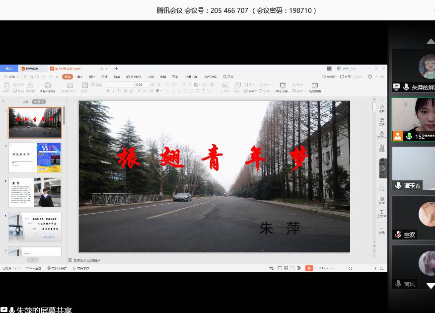 图为朱萍校友作“振翅青年梦”线上主题分享截屏