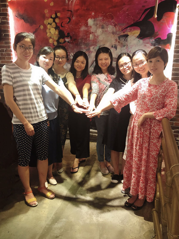 图为团队成员近期工作照片(上排左起:王瑾、吴珊、朱凡、周芳;下排左起:倪丹萍、黄清芬、祝钰、罗利芳)