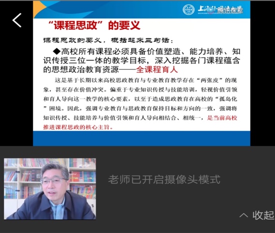 (通讯员:高亮 赖晓笛)3月28日上午,外国语学院旅游专业教研室全体教师参与了由上海外国语大学主办的思政和外语教学融合的网络研修课程。本次研修班共分为两个课堂,分别为赵鸣岐教授主讲的《关于推进思政课的教学理念和方法》以及王岚教授主讲的《课程思政与外语教学的有机融合》。