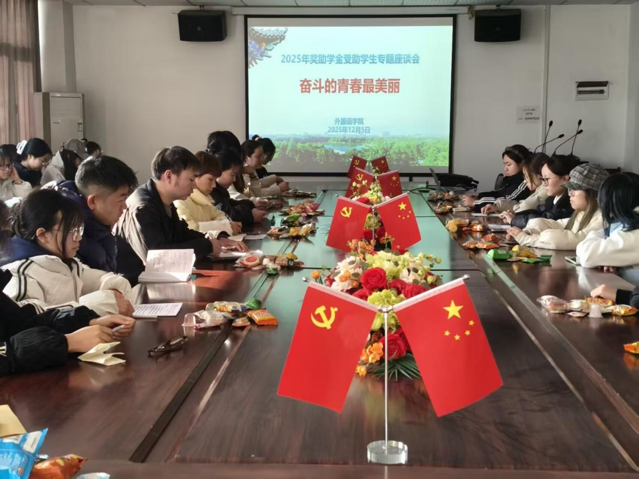 (通讯员:李天笑)为全面落实立德树人根本任务,深化资助育人工作实效,激励广大学子奋发自强、立志成才,2025年12月5日下午,外国语学院在10号教学楼412会议室召开国家励志奖学金、国家助学金受助学生座谈会。