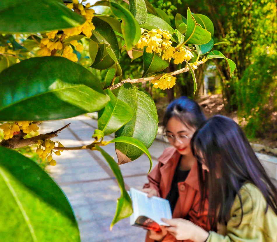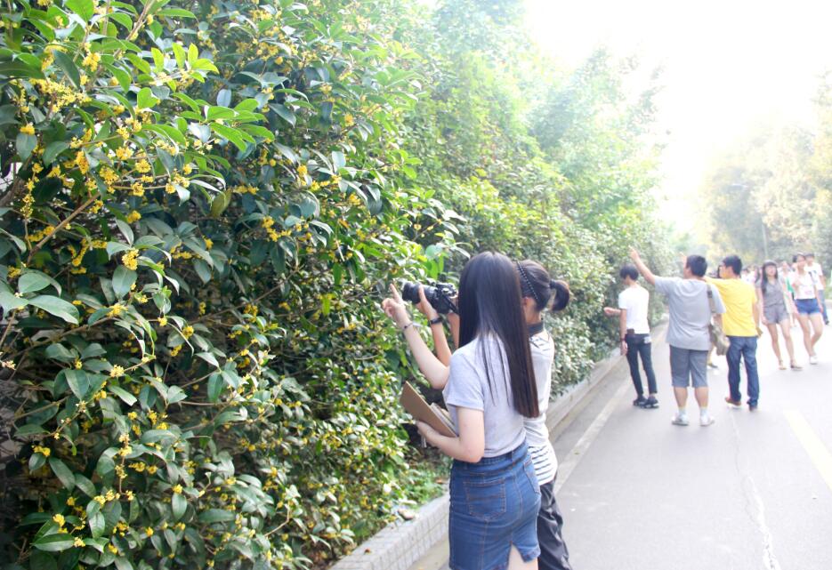 “独占三秋压众芳,何咏橘绿与橙黄。自从分下月中种,果若飘来天际香。”金秋时节,桂花吐芳。目前,校园内种植的金桂、银桂、丹桂等品种正陆续开放,飘香、淡雅、浓郁的香气令人心旷神怡。全校师生可在课余休息时间,赏桂品香,游写画摄,愉悦身心,陶冶情操。