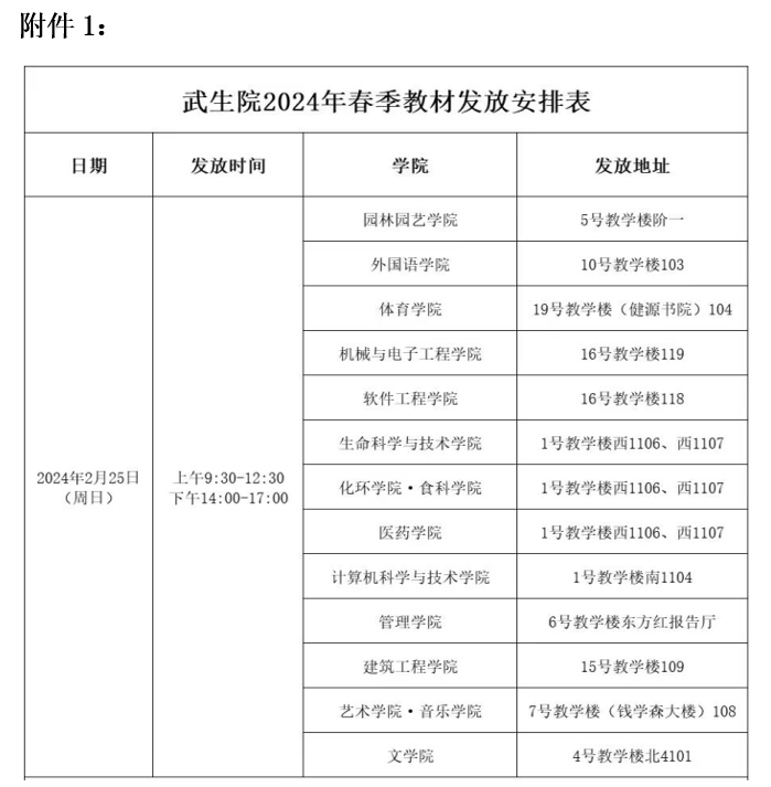 2024年春季学期教材已采购到位,将于2024年2月25日发放学生教材,请各学院按教材发放时间安排前往领取(详见附件1)。