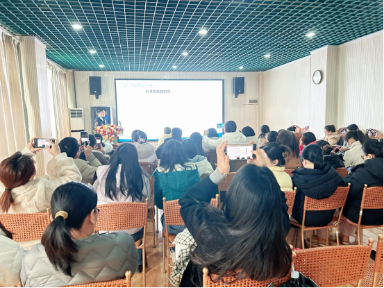 图为与会教师认真聆听讲座