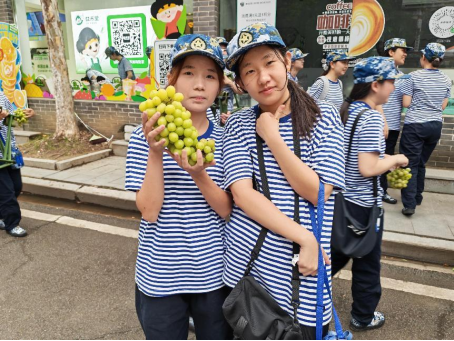 休息时的小温暖最是动人:有同学悄悄帮身旁“战友”拭去额角汗珠,有人凑在耳边分享“涂防晒要隔2小时补一次”的小窍门,细碎的关照像凉风,悄悄吹散了烈日下的枯燥。训练尾声的惊喜更让人心头一暖——学院早备好清甜的葡萄,军训助理提着装满果粒的篮子穿梭在队伍中,把冰凉的甜意挨个递到大家手里。