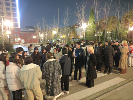 (通讯员 王玉晗 蒋莲丽)2025年11月20日晚19:00至20:00,由外国语学院2025级商务英语专科1班承办的英语角活动在学院门口顺利举行。本次活动以“Holidays and Leisure”为主题,致力于打造沉浸式的英语交流环境,助力同学们在真实语境中提升口语表达能力,拓展跨文化视野。