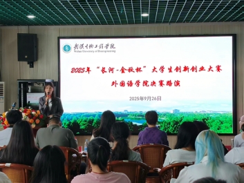 (通讯员 涂瑶)9月26日下午14:00-16:30,外国语学院在十号楼606会议室成功举行了2025年度“长河-金秋杯”大学生创新创业大赛决赛路演,大学生生涯教育研究院对外联络部主任、湖北省生涯教育研究会办公室副主任吴凯、创新创业学院综合办公室主任助理车通达、外国语学院党总支书记、常务副院长周芳、党总支常务副书记彭园萍、院长助理周逸轩、商务英语专业带头人祝懿婷、党政秘书高亮、25级学生辅导员、分团委书记涂瑶担任本次决赛评委。