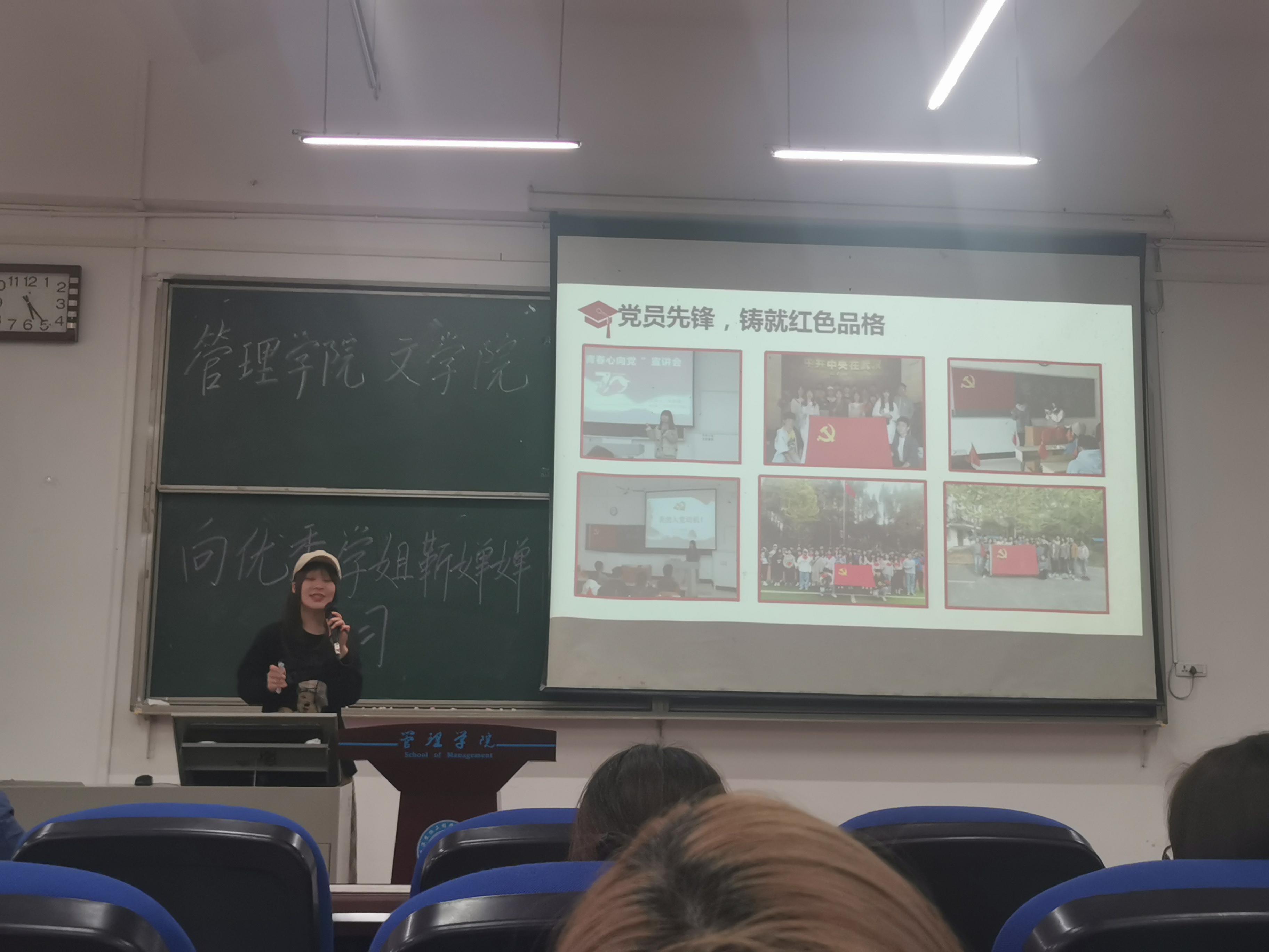 靳婵婵是武汉生物工程学院的优秀大学生先进典型。她一路专升本,又“三跨”考研成功,近日,她收到了上海工程技术大学2021年行政管理专业硕士研究生的录取通知。在此次班会上,靳婵婵以“做生命的主角,奋力奔跑”作为主题进行了故事分享,从党员先锋、服务奉献、双创达人、专于学习、感恩生院五个方面讲述了她的大学五年成长之路,把正能量传递给了学弟学妹们。“大学四年时间飞快,希望学弟学妹们珍惜当下,做最好的自己,不负青春,不负未来”靳婵婵说道。