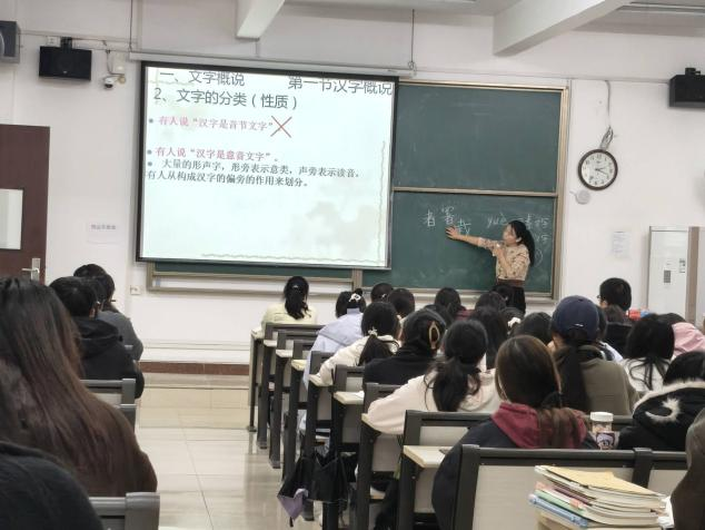 在讲解汉字体系特性时,雷老师展现出开阔的语言学视野。她将汉字与英语、日语等文字进行横向对比,从构形逻辑、表意功能到文化承载,层层剖析汉字作为自源性意音文字的独特性。这种跨语际的观照,不仅清晰勾勒出汉字的形体特征,更在比较中建立起学生对母语文字的自觉与认同。
