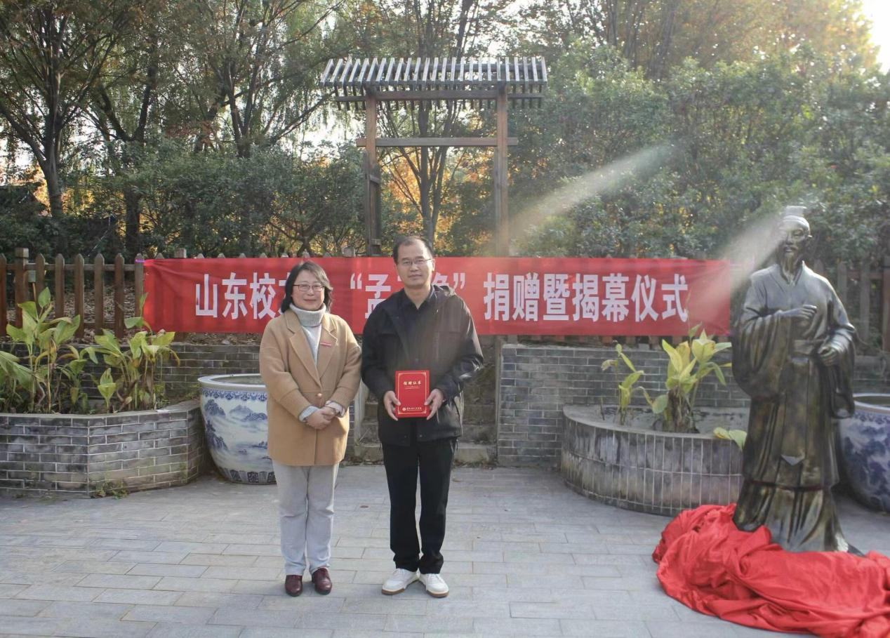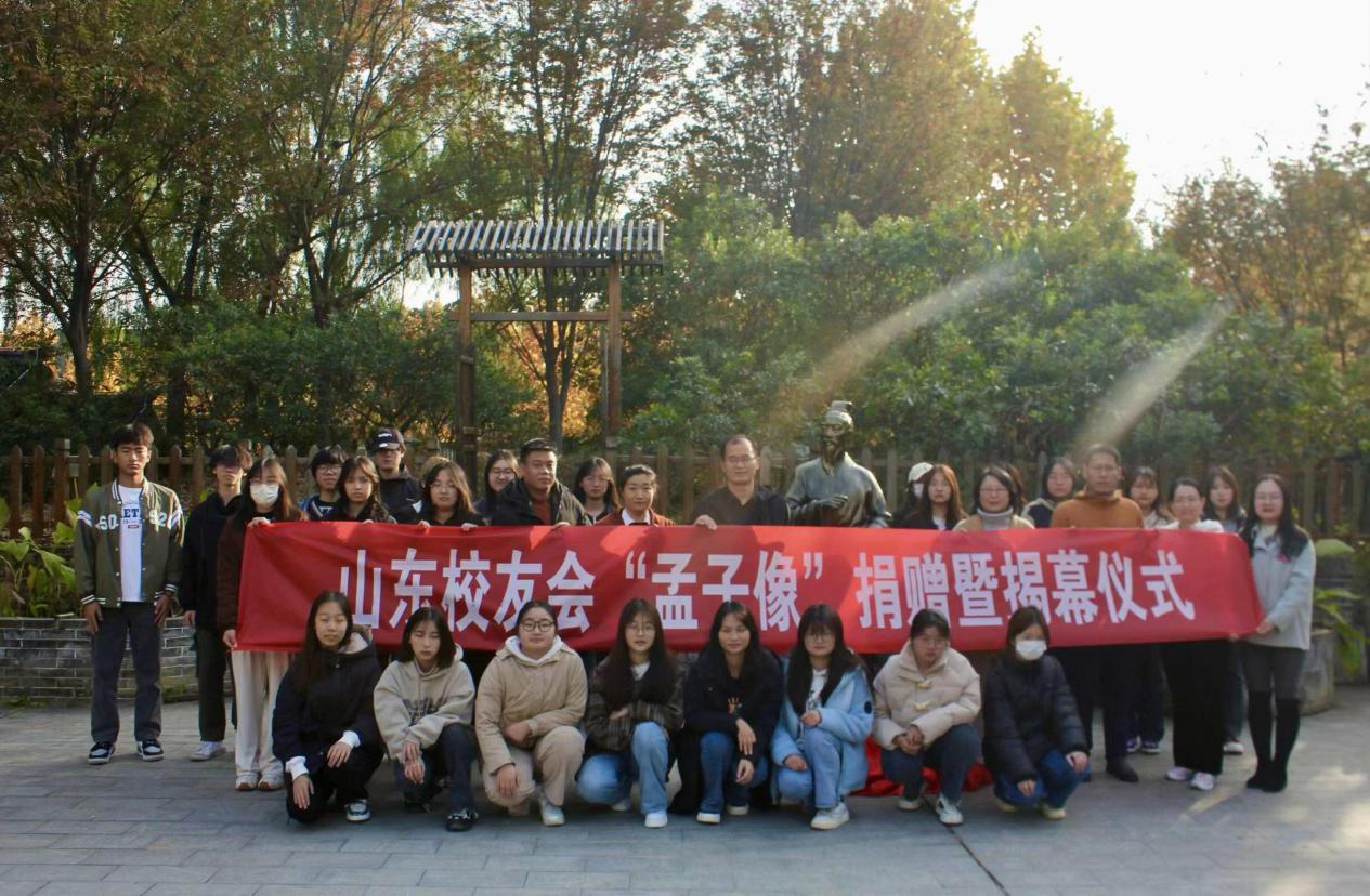 孙玉巧与山东校友会代表等共同为孟子像雕塑揭幕