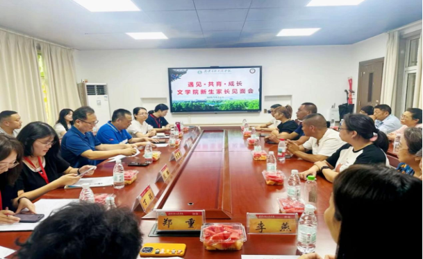 为搭建家校沟通的桥梁,凝聚育人合力,共同助力2025级新生扬帆起航。9月6日下午,文学院在四号楼4105会议室举办了主题为“遇见·共育·成长”的2025级新生家长见面会。校务委员会顾问赵正洲出席座谈会,学院党政负责人、教师代表、辅导员及近30名新生家长齐聚一堂,共话学子未来。