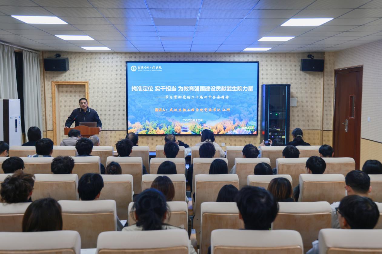 本网讯(通讯员 宋颖颖 摄影 谈宇锋)12月1日晚,校党委书记江珩以《找准定位 实干担当 为教育强国建设贡献武生院力量——学习贯彻党的二十届四中全会精神》为题,为智能制造学院师生党员、发展对象、入党积极分子,马克思主义学院教师,机关党总支第二党支部全体成员宣讲党的二十届四中全会精神,此次宣讲同时也是面向智能制造学院青年学生的一堂“形势与政策”课。
