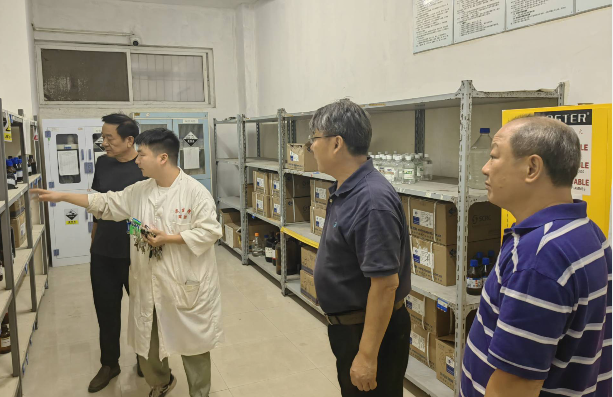 校长顾豪爽(右二)检查生化实验楼危化品仓库