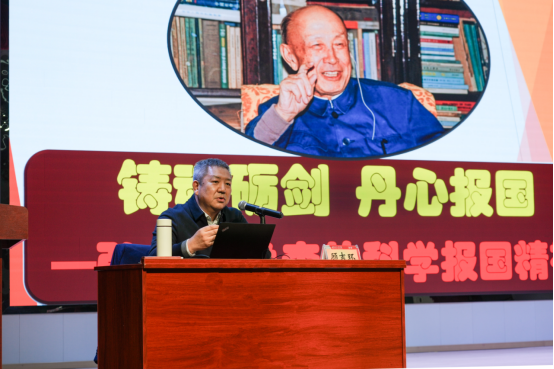 当日下午,钱学森生前秘书、钱学森学院顾问顾吉环教授以《铸魂砺剑丹心报国——弘扬钱学森的科学报国精神》为题,在学校小礼堂为师生们带来了一场思想深邃、情感充沛的主题报告。他结合自身工作经历,用生动的语言、鲜活的细节,深情回顾了这位“杰出科学家、人民知识分子典范、中国航天事业奠基人”以科学报国为己任的一生。从自幼受《钱氏家训》熏陶,胸怀“利在天下”的家国情怀,到青年时期远赴重洋、矢志成才,始终坚守“学成归国、建设祖国”的信念;从冲破阻碍回到祖国,带领团队研制“两弹一星”的艰辛,到初心不改、投身新中国国防和航天事业建设的执着坚守。现场掌声不断,师生们专注聆听、认真记录,多次被钱学森先生的爱国情怀与科学精神感动得热泪盈眶。