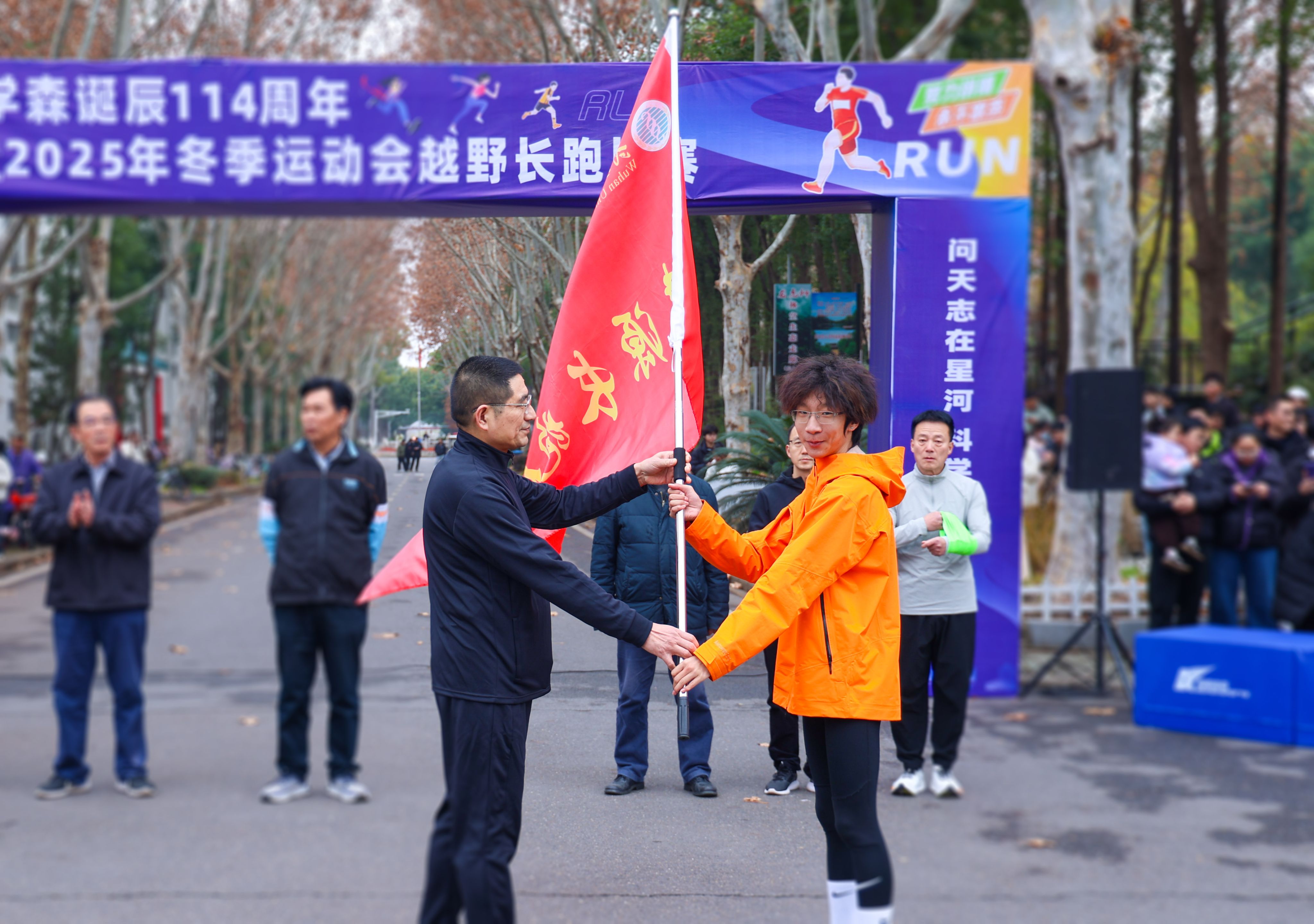 校党委书记、校体委主任江珩为健源长跑协会授旗