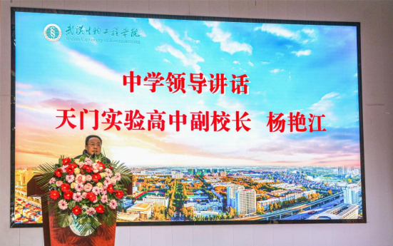 天门实验高中副校长杨艳江作为中学代表发言,从高中育人一线视角出发,表达了对构建高效务实的高中—高校协同育人机制的热切期待与合作意愿。