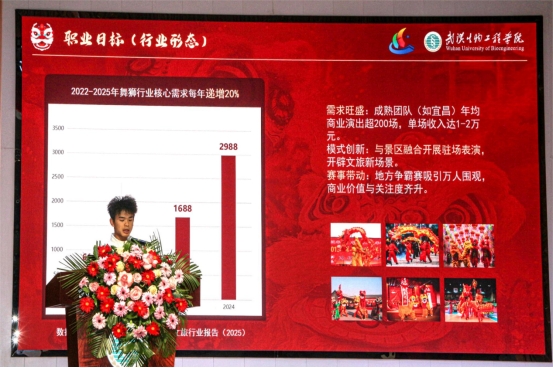 校友代表、生命科学与技术学院2012届校友、武汉波睿达生物科技有限公司副总经理张尚昆结合自身成长经历,深情回顾了母校教育对其职业发展的深远影响。医药学院2024级药学专业潘钰涵、体育学院2022级社会体育指导与管理专业高灿同学分别进行了职业生涯规划路演,展现了新时代大学生清晰的自我认知与蓬勃的成长潜力。