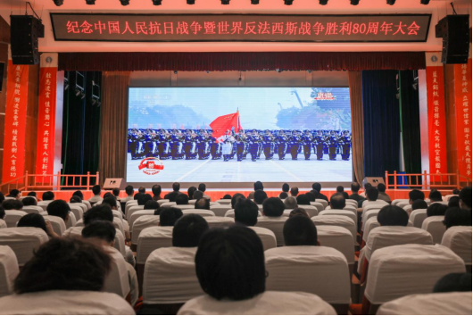 师生在延安精神大讲堂集中收看九三阅兵直播