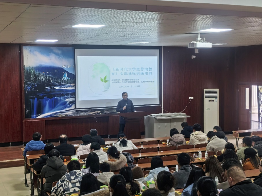 本网讯(通讯员 晨曦)2月28日下午,学校劳动教育办公室在九号楼阶一教室举办2026年春季学期《新时代大学生劳动教育》指导教师专题培训。劳动办全体人员、各学院劳动教育分管领导及联络人、2024级本科和2025级本专科开课班级辅导员及各用人单位指导教师参加培训。