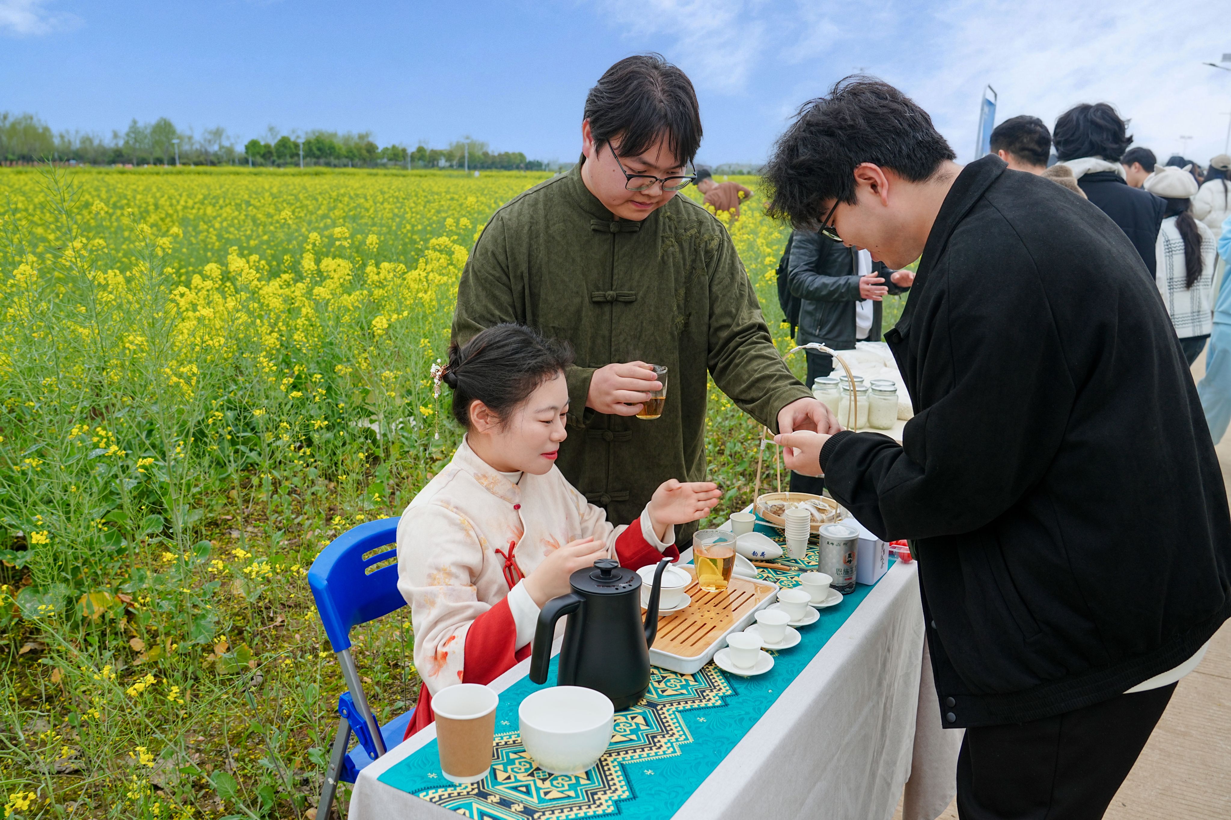 在预热阶段,校园内已掀起了一股“春日热潮”。文学院、艺术学院、音乐学院率先发力,在花海间进行诗歌朗诵、歌曲演唱与绘画创作,相关短视频在社交媒体上迅速传播,引发了广泛关注。傍晚时分,音乐学院的师生们在花田边架起乐器,举办《田园乐章》不插电音乐会,悠扬的旋律在春风中飘荡,为校园增添了浓厚的艺术氛围。长河农业公司推出的垛田划船、捉鱼摸虾、花田垂钓等互动体验项目深受欢迎,师生沉浸式体验花田乐趣,共享春日美好。