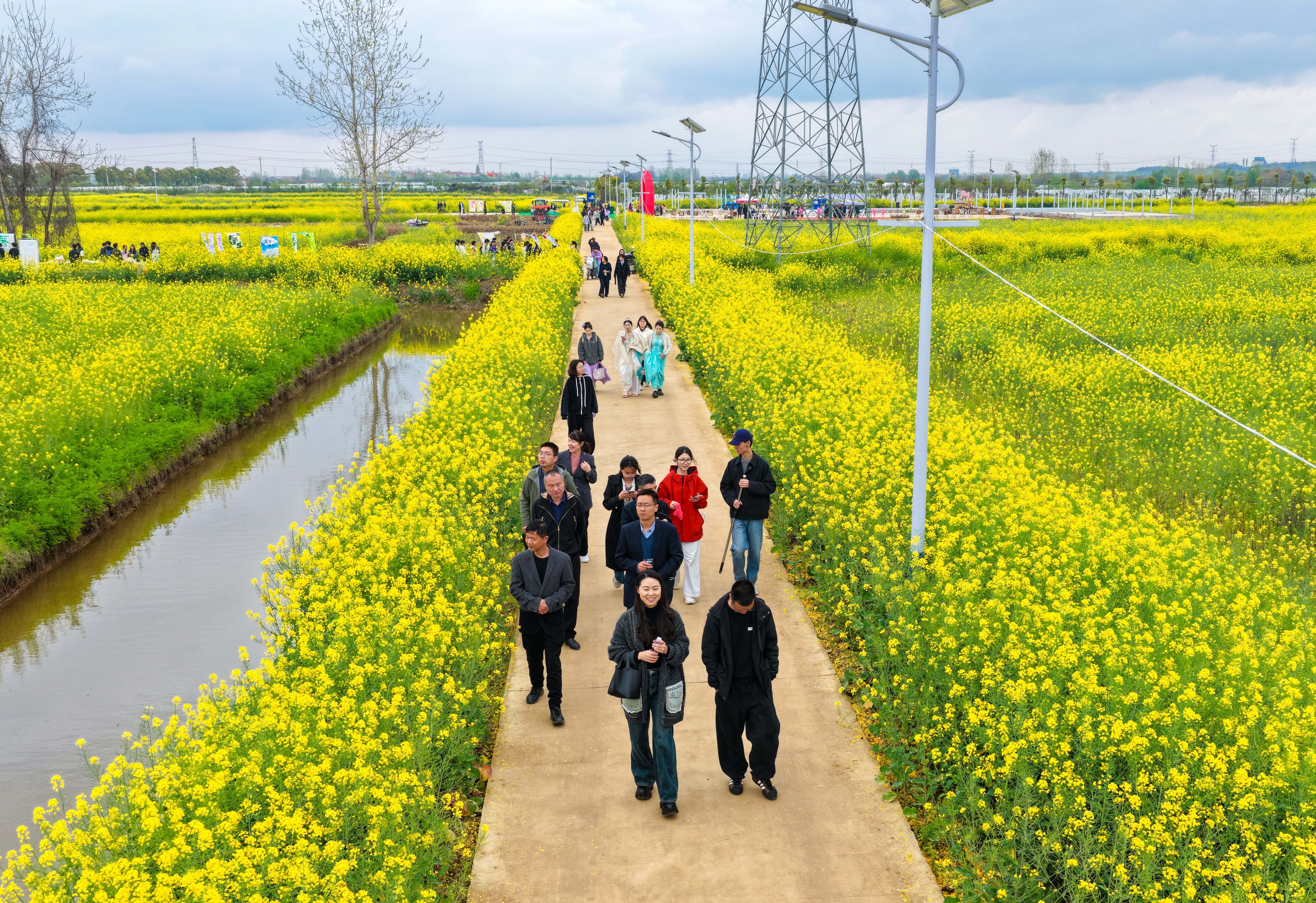 作为本次活动的重头戏,开幕式暨赏花游园活动于4月3日下午在晒秋田园广场隆重举行。现场彩旗飘扬,人头攒动,气氛热烈非凡。本次活动还吸引了长江新区阳逻街周边草莓种植大户、仓埠街特色糍粑与豆丝、新洲区邾城街徐治塆盘扣非遗传承、三店街生态油菜花蜜等农户参展。